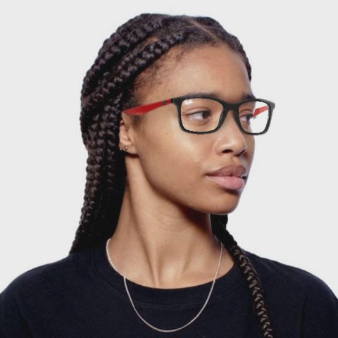 La forma de este marco de lente óptico es FORMA CUADRADO y de MATERIAL INYECTADO, por lo que es ideal para caras del tipo: Diamante, Ovaladas y Redondas.